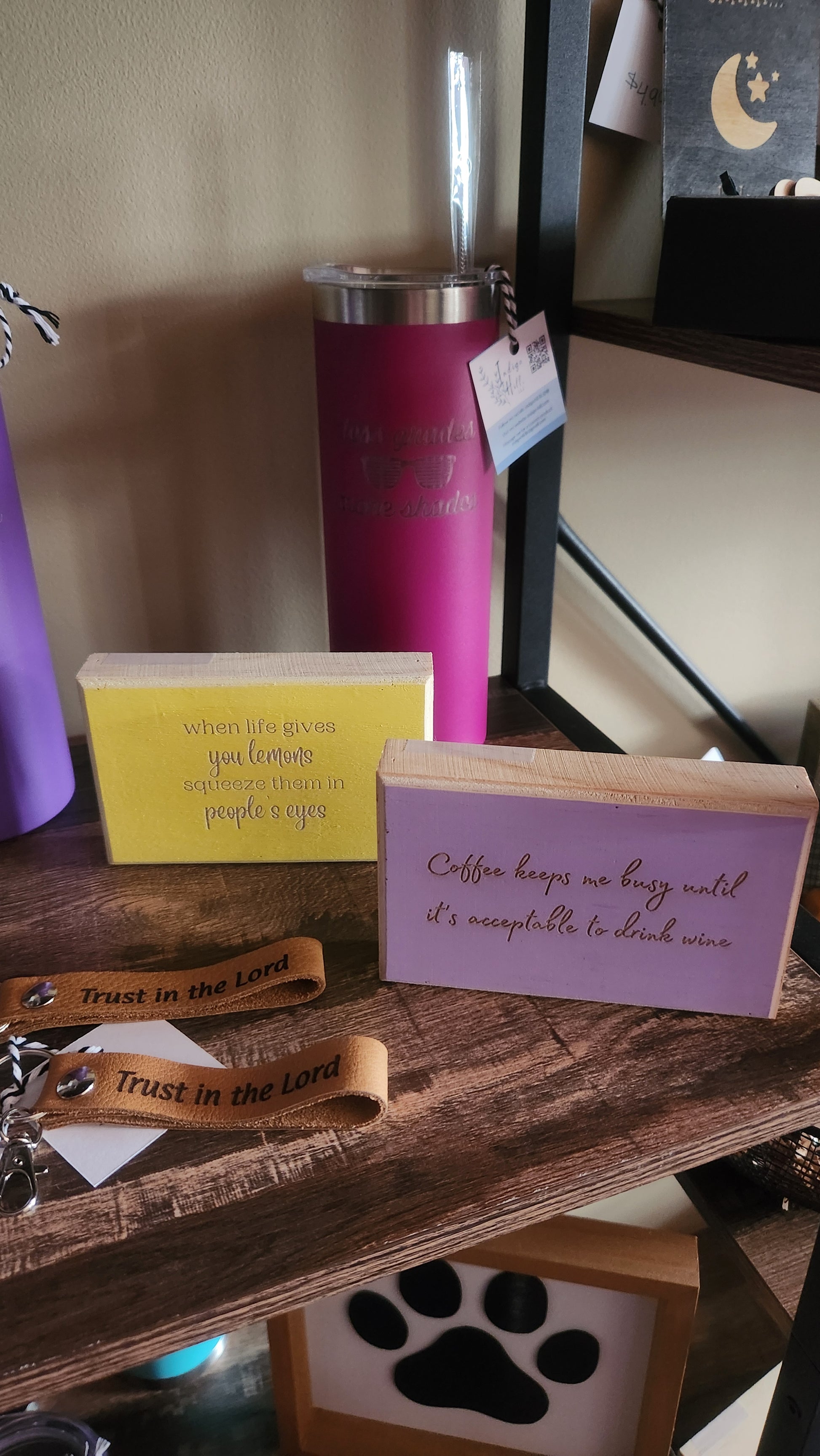 Signs come in a variety of shapes and sizes. Your chosen saying will be adjusted accordingly to fit the shape and size of your chosen sign!